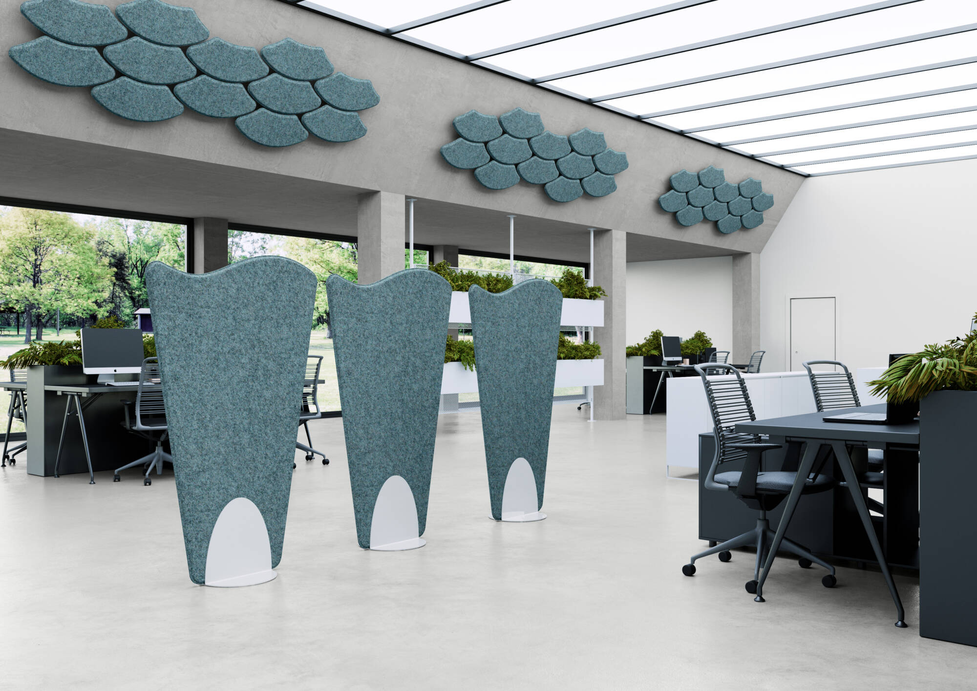 Los paneles fonoabsorbentes tienden a ser los productos más ligeros y suelen tener una percepción táctil de suavidad. Estos paneles suprimen los ecos en áreas más grandes como auditorios, salas de conferencias y gimnasios, lo que hace posible un buen