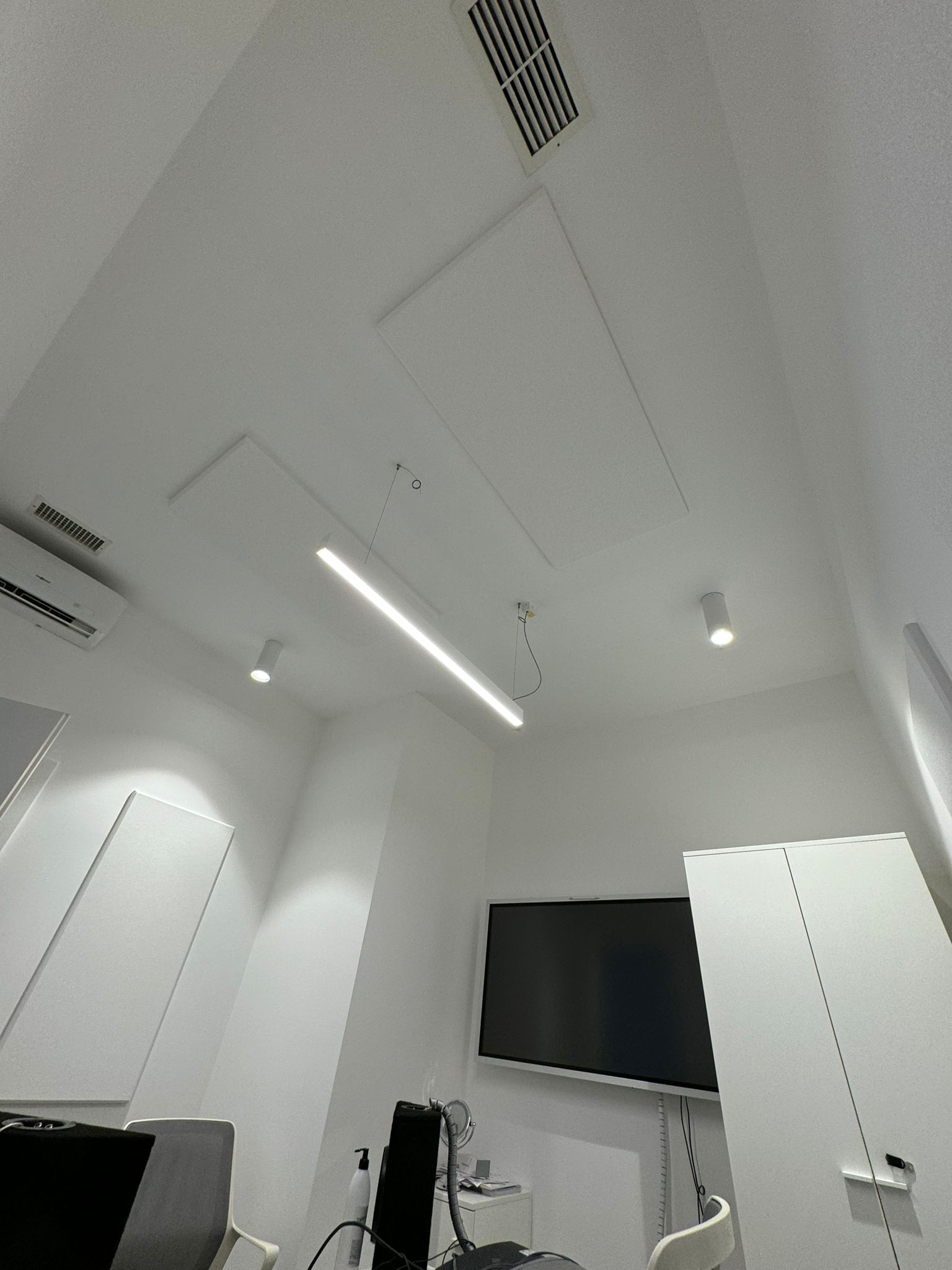 Paneles fonoabsorbentes de lana mineral con acabado en pintura blanca